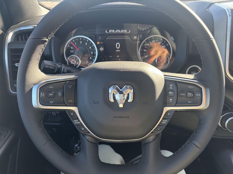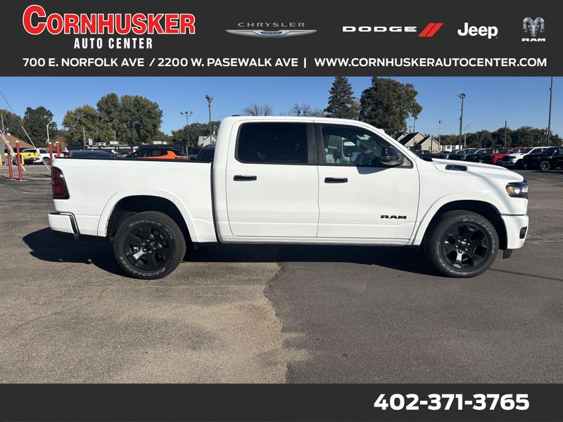 The 2025 Ram 1500 Big Horn Crew Cab 4*4 in Bright White Clear-Coat combines rugged performance and comfort in one loaded package. It comes powered by a 3.6L V6 eTorque engine with Stop/Start, mated to an 8-speed automatic transmission. This setup delivers approximately *19 MPG city / 24 MPG highway / 21 MPG combined* --- great for both daily drives and weekend work. The Big Horn trim includes 20-inch painted-clad aluminum wheels, body-color front and rear bumpers with step pads, premium power mirrors, deluxe cloth bucket seats, heated front seats, and a heated steering wheel. The tech stack features Uconnect 5 with a touchscreen interface, adaptive cruise control with stop and go, blind-spot and cross-path detection, ParkView Rear Back-Up Camera, front & rear park-assist, dual-zone climate control, and other driver aids. With a total MSRP of *$58,850*, including destination, this Ram 1500 Big Horn strikes a strong balance between capability and comfort. Visit Cornhusker Auto Center at *700 E Norfolk Ave, Norfolk, NE 68701* to see it in person!