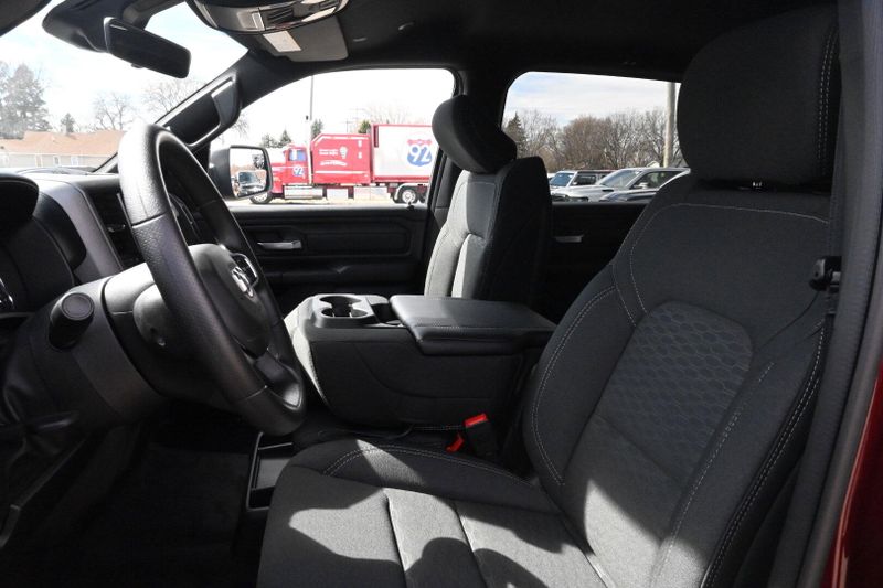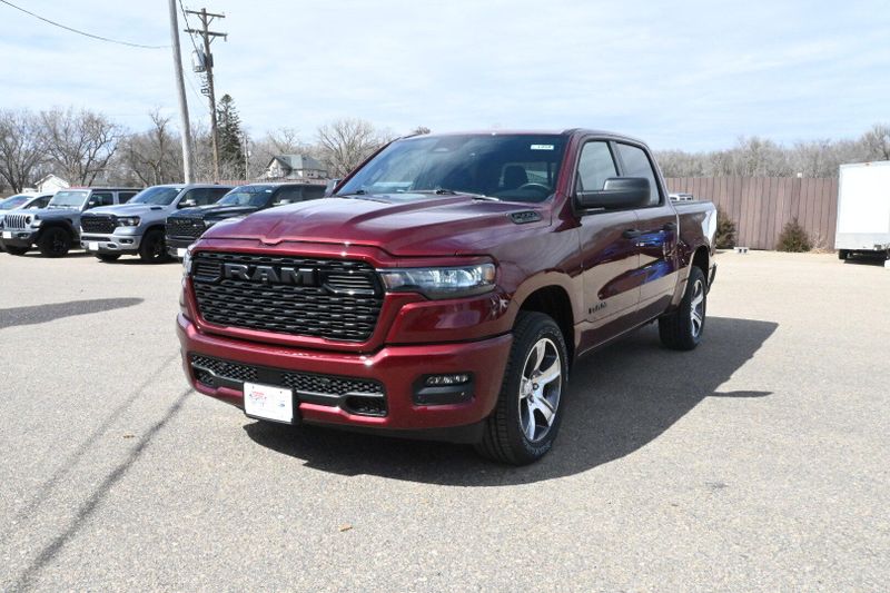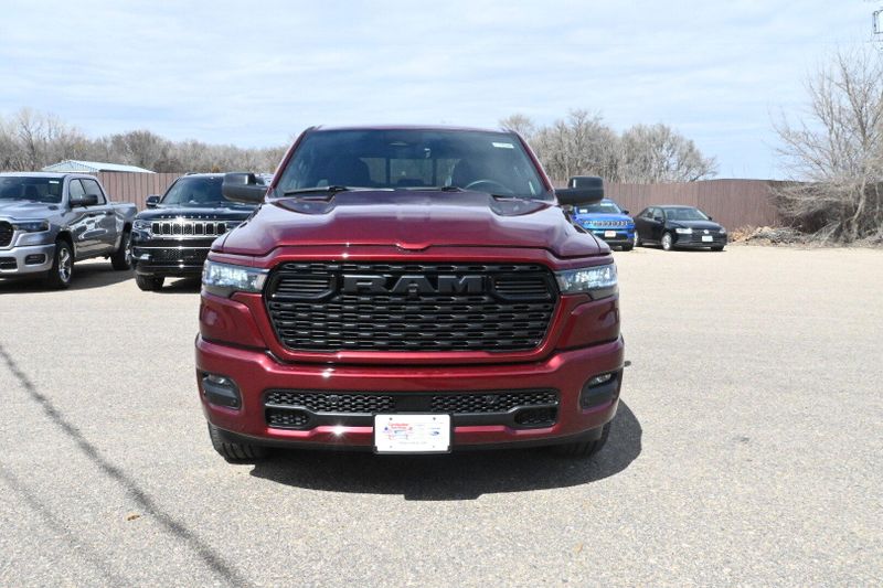 The 2025 Ram 1500 Tradesman Crew Cab 4X4 combines rugged capability with modern comfort. Powered by a 3.0L I6 Hurricane SO Twin Turbo engine with Stop/Start technology, it offers a great balance of power and fuel efficiency, achieving an EPA-estimated 17 MPG city and 24 MPG highway. This model features an 8-speed automatic transmission, 20-inch polished aluminum wheels, and a Class IV receiver hitch, perfect for towing and heavy-duty tasks. Inside, enjoy a black cloth bench seat, Uconnect 5 with an 8.4-inch touchscreen, hands-free phone and audio, and a 4G LTE Wi-Fi hotspot. Safety features include Adaptive Cruise Control with Stop and Go, Full-Speed Forward-Collision Warning Plus, Blind-Spot and Cross-Path Detection, ParkSense Front and Rear Park-Assist, and Pedestrian Emergency Braking. Finished in striking Delmonico Red Pearl-Coat, this Ram 1500 also comes with the Tradesman Level 1 Equipment Group, Sport Appearance Package, and Trailer Brake Controller. With an MSRP of $55,195 including destination charge and strong warranty coverage, the 2025 Ram 1500 Tradesman Crew Cab 4X4 is ready to handle any challenge. Visit Cornhusker Auto Center at 700 E Norfolk Ave, Norfolk, NE 68701 today to see it for yourself!