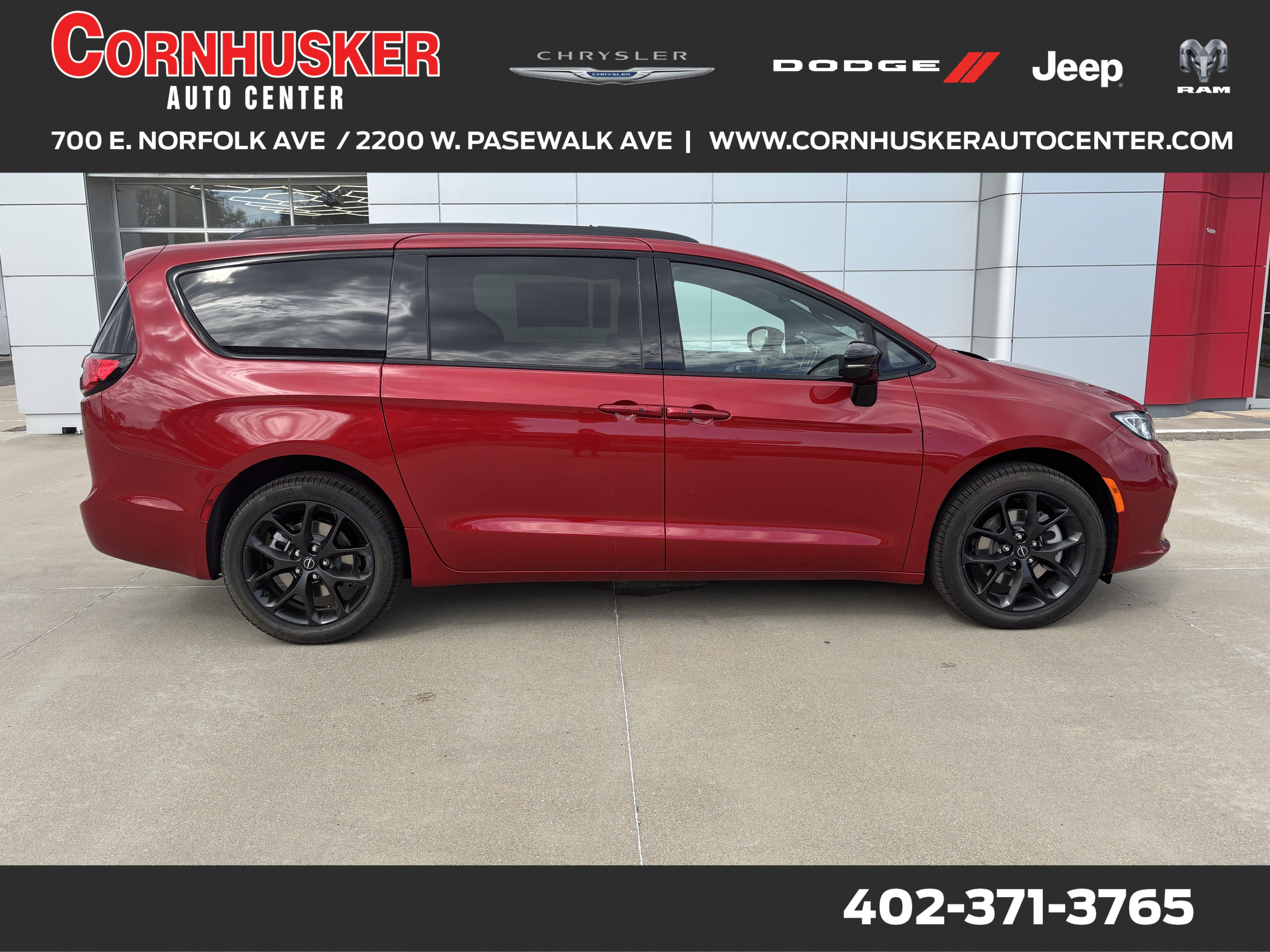 You can't beat the price with this 2026 Chrysler Pacifica Limited AWD S Appearance. It features a 3.6L V6 engine with a 9-speed automatic transmission, delivering a combined fuel economy of 20 MPG. The exterior boasts a striking Red Hot Pearl-Coat finish, complemented by 20 Foreshadow painted aluminum wheels, black anodized badging, and a black Stow 'n Place roof rack. Inside, the cabin is adorned with Nappa leather bucket seats embossed with the S logo, offering both luxury and comfort. Technological amenities include a Uconnect 5 Nav system with a 10.1-inch touchscreen, Apple CarPlay, Google Android Auto?, and a 4G LTE Wi-Fi hotspot. For entertainment, the vehicle is equipped with 13 Alpine speakers and SiriusXM 360L. Safety features are comprehensive, with adaptive cruise control, blind-spot and rear cross-path detection, lane-departure warning, pedestrian emergency braking, and ParkSense rear park-assist with stop. Additional conveniences include hands-free power sliding doors, a power liftgate, and a dual-pane panoramic sunroof. This model also offers the flexibility of Stow 'n Go seating and storage system, ensuring ample cargo space when needed.For a must-own New Chrysler, Jeep, Dodge, and Ram, come see us at Cornhusker Auto Center, 700 E Norfolk Ave, Norfolk, NE 68701, your local New Car Dealership in NE. Just minutes away!