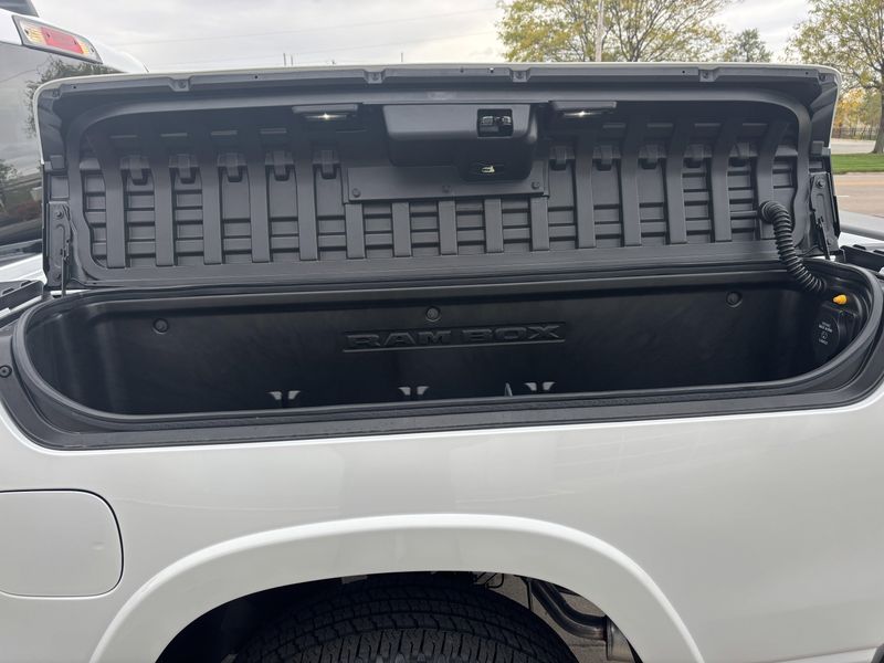 • BIG HORN LEVEL 1 EQUIPMENT GROUP -inc: SiriusXM Radio Service Rear Window Defroster Rear View Auto Dim Mirror Power Adjustable Pedals Leather Wrapped Steering Wheel Rear Power Sliding Window Rear Dome w/On/Off Switch Lamp Glove Box Lamp Auto Power-Folding Mirrors Auto Dim Exterior Driver Mirror Heated Front Seats Heated Steering Wheel Black Premium Power Mirrors SiriusXM Satellite Radio 400W Inverter Exterior Mirrors w/Supplemental Signals Steering Wheel Mounted Audio Controls Exterior Mirrors Courtesy Lamps Body Color Fender Flares 115V Auxiliary Power Outlet Universal Garage Door Opener 2nd Row In Floor Storage Bins Sun Visors w/Illuminated Vanity Mirrors